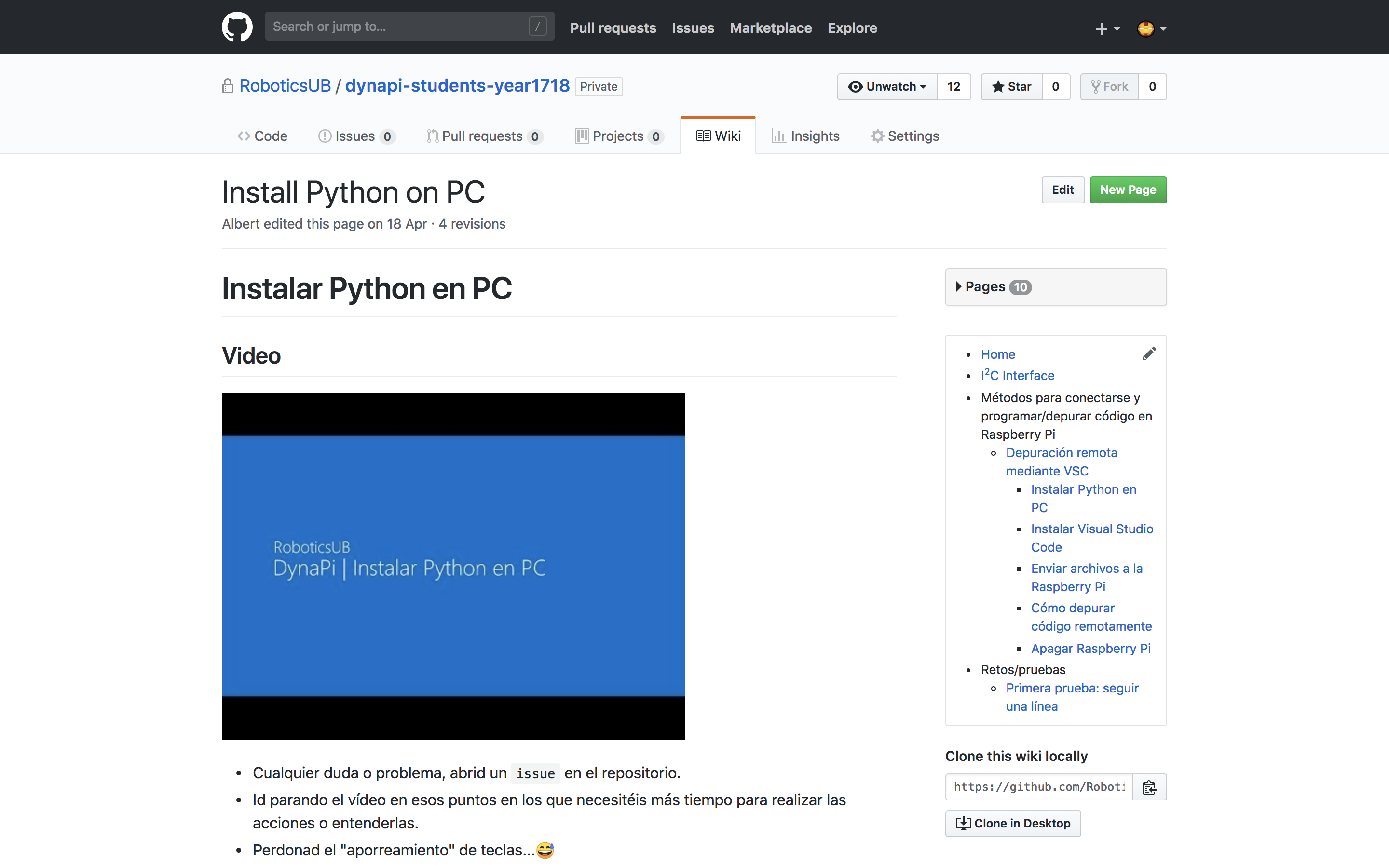A los alumnos les pido que utilicen GitHub para llevar a cabo las prácticas. Allí suben/comparten su desarrollo con el resto de los equipos y con el otro grupo de la otra asignatura a la vez que lo documentan mediante la wiki asociada. De este modo todo el mundo dispone del código del resto y saben cómo operar con él al disponer de la correspondiente wiki. Además, los guiones de prácticas también están subidos a GitHub y abiertos a que los alumnos los editen en aquellos puntos que ellos creen que deben ser mejorados, necesitan ser más detallados o producen confusión. Por lo que no solo colaboran entre ellos, sino también colaboran con el profesorado mejorando el material docente de la asignatura.